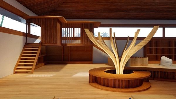 Kahua Palekana is thoughtfully designed to create a welcoming atmosphere where visitors are greeted at the administrative building, flowing seamlessly into a common area that features a living room, kitchen, and technology center. The surrounding square buildings serve as sleeping quarters, each with a central garden that enhances the natural environment, while a play court in the backyard provides an inviting space for recreation and community interaction.